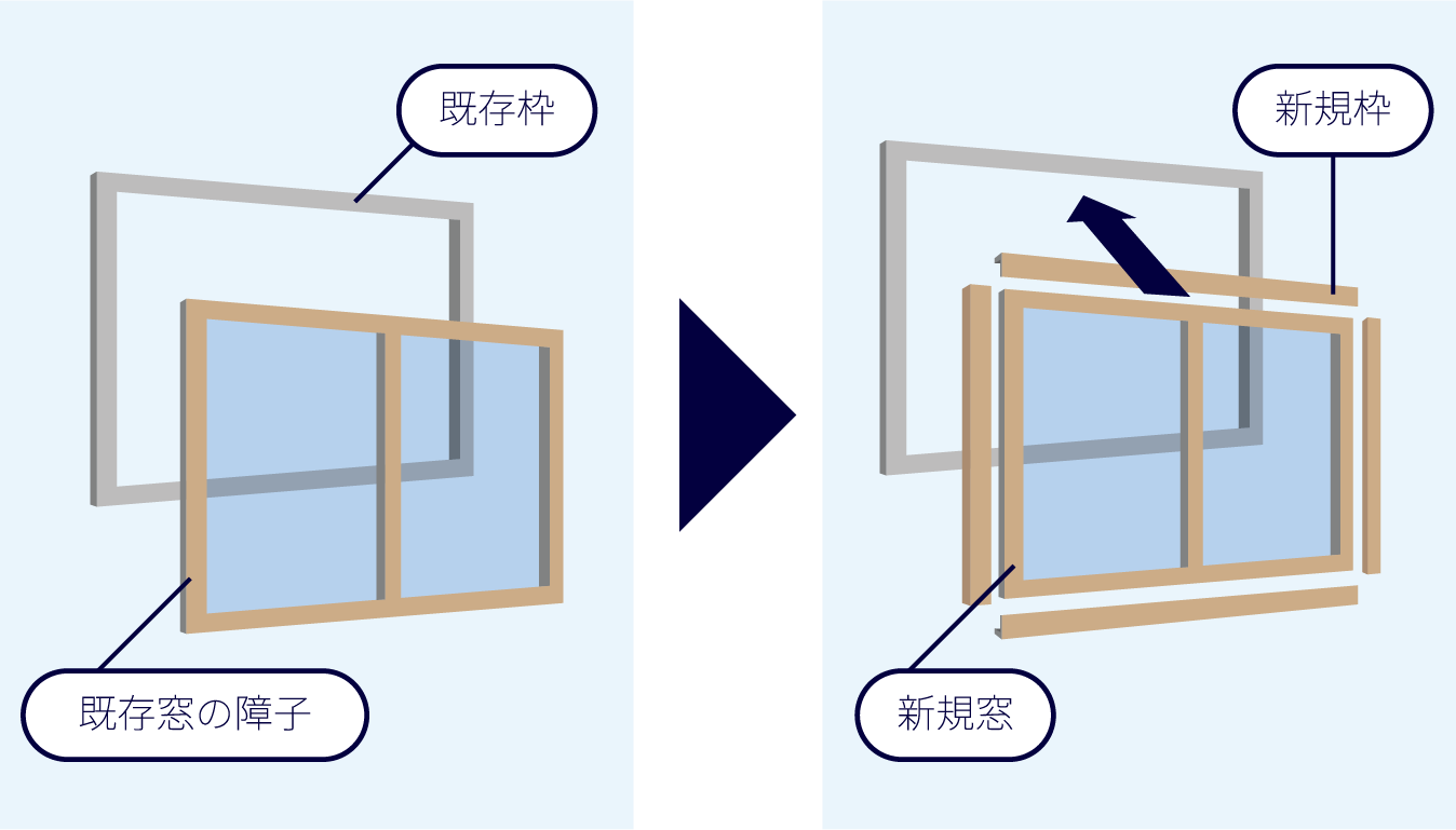 環境省の「先進的窓リノベ事業」における「外窓」とは住宅の外皮部分※にある開口部に設置する建具のうち、屋外から施錠できない建具をいいます。なお、「カバー工法」とは、既存窓のガラスを取り外し、既存窓枠の上から新たな窓枠を覆い被せて取り付け、複層ガラス等に交換する工事をいいます。